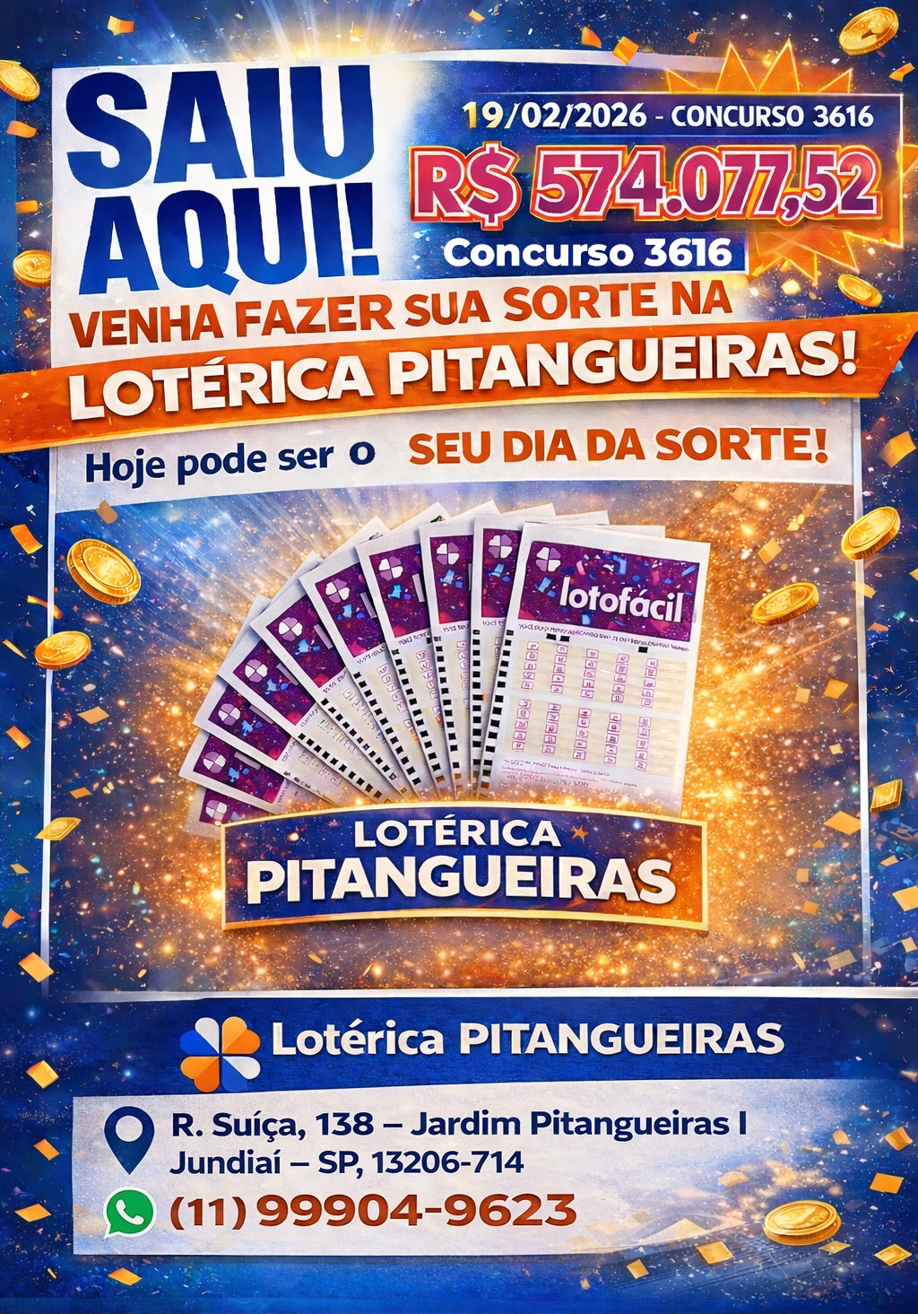 Não deixe a distância atrapalhar sua diversão com loterias e serviços financeiros. Junte-se a milhares de clientes satisfeitos que tornaram nossa lotérica uma das mais bem avaliadas no Google.